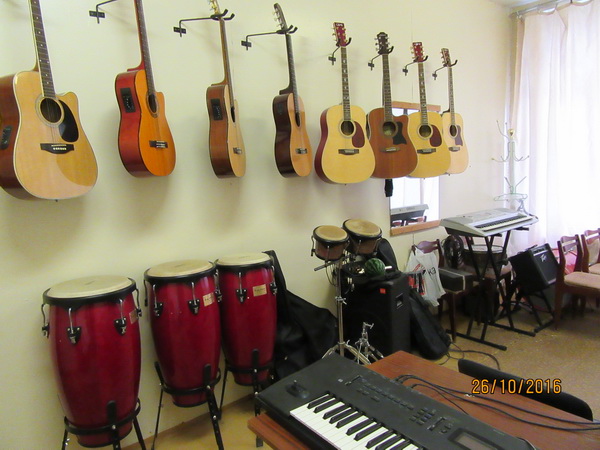 - эстрадная студия вокала для занятий в рамках дополнительного образования обучающихся с необходимой звукозаписывающей аппаратурой, микрофонами, музыкальными инструментами (гитары, электрогитары, ударные);